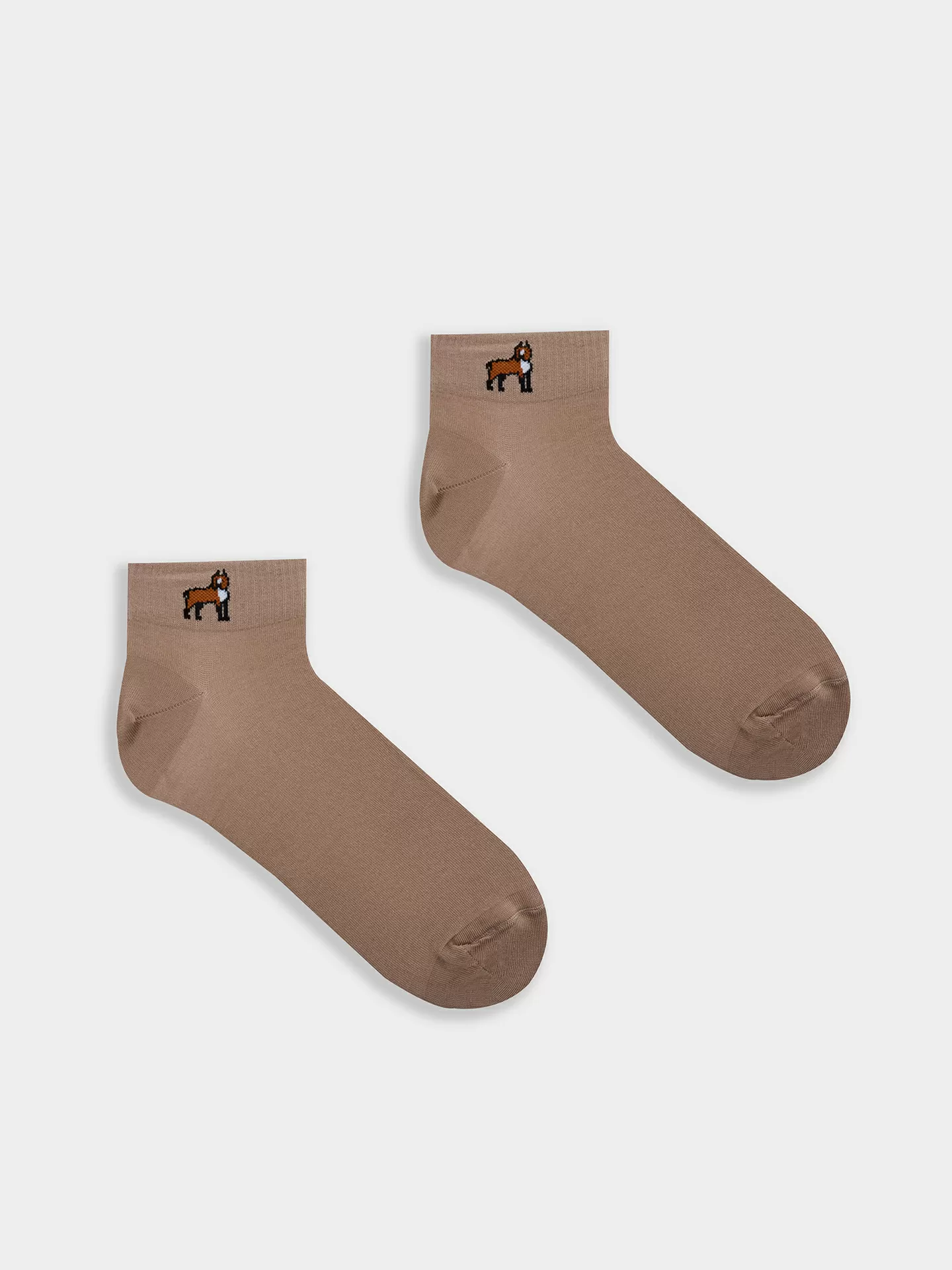 рис.3093 Укороченные мужские носки с рисунком в виде пса на бортике.